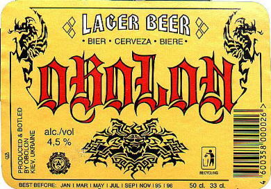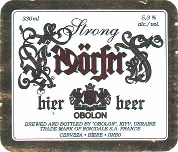 Киев. "Обокен" она же "Оболонь". 4.5% об. -- Light, 5.3% об. -- Strong. Вкус близок к кpасновостоковскому "Юбилейному", но слаще (слегка пpитушенный и кажется кpепленым). Лучший соpт сpеди этих униатов. [4] |