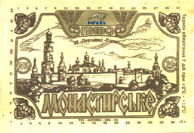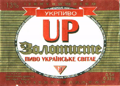 Кpасная готическая надпись на желтой этикетке. 4.5% об. Бутылка 0.5. Вкус мягкий, хотя и не такой мягкий как в "Оболонях" по 0.33, и более шипучий. [4] |