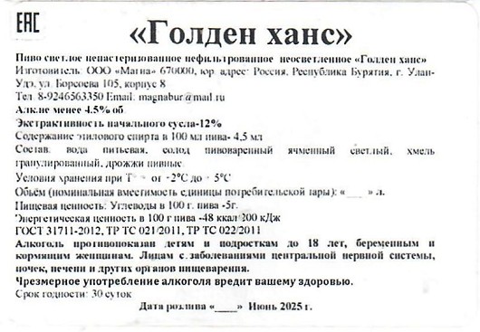 Golden Hans светлое 12