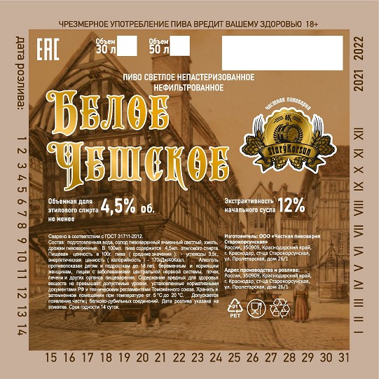 Чешское барное нефильтрованное 6