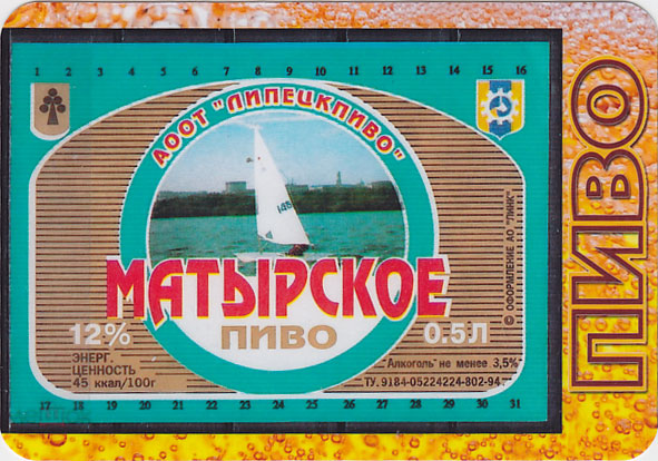 1. Выпуск А. Лидерс Пиво 1 - 10. Г: а) «Братина»; б) «Владимир Мономах»; в) «Град Симбирск»; г) «Жигулевское» Рыбинский ПЗ; д) «Жигулевское» Челпикс; е) «Матырское»; ж) «Московское» Бийский ЗБН; з) «Московское» Рыбинский ПЗ; и) «Юбилейное»; к) «Ячменный колос». |