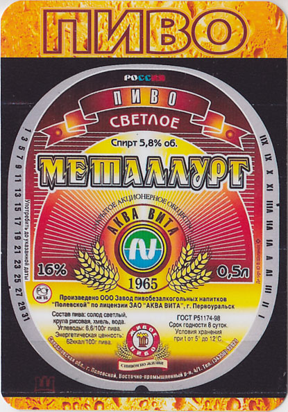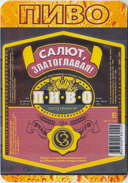 2. Выпуск А. Лидерс Пиво 1 - 12. В. а) «Донское казачье»; б) «Исетское»; в) «Металлург»; г) «Наша марка»; д) «Балтика»; е) «Охота»; ж) «Конкорд»; з) «Салют, златоглавая»; и) «Форт»; к) «Российское»; л) «Усть-Илимское»; м) «Ключи». |