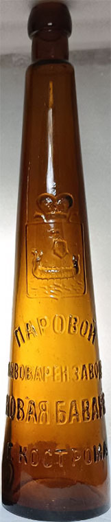 | Показанный здесь трактир - принадлежит С. И. Вавилову. Опять же, информации по С. И. Вавилову у меня нет, посмотрим лучше на пивные бутылки из которых пьют пиво в трактире. Похоже здесь тоже пьется пиво от "Трехгорного" и "Шаболовского" пивзаводов, но вот еще одна бутылка - от костромского пивзавода "Новая Бавария". "Баварий" (в том числе и "Новых") в Российской Империи было не мало, паровой пивоваренный завод "Новая Бавария" и заведение искусственных минеральных и фруктовых вод в Костроме - был основан в 1871-ом году купцом Н. Я. Устиновым. После его смерти принадлежал его наследникам, а арендовал - Викентьев. С 1890-го года завод уже принадлежал братьям Викентьевым. В 1896-м году его покупает чех Эмиль Куни. После революции пивзавод был национализирован, выпускал пиво и фруктовые воды. В предвоенный период он именовался как "Пивоваренный завод Костромского Промкомбината". 30-го марта 1992-го года "Костромской пивзавод" был приватизирован и стал называться "Росич". После нескольких переименований завод был закрыт в конце 90-х годов. | ||||||||||||||||||||||||||||||