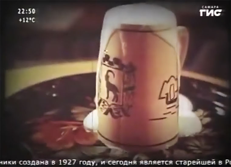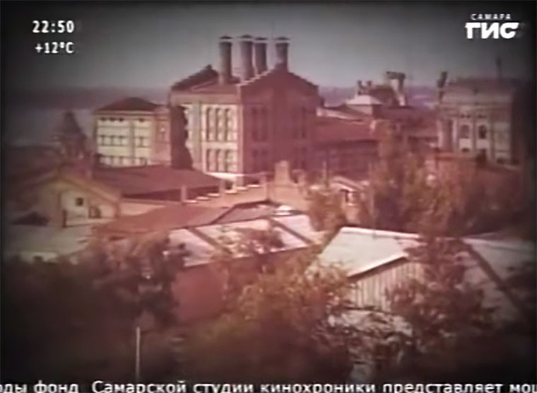 | Далее в фильме показаны основные архитектурные достопримечательности города и среди них строения собственно "Жигулевского пивзавода" построенного в 1881-м году Альфредом фон Вакано (и инициалы FV мы видим на флюгере установленном над заводской трубой). | ||||||||||||||||||||||||||||||