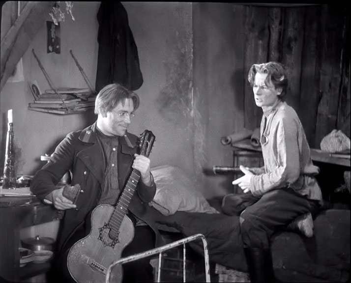 | "В людях" - черно-белый полнометражный художественный фильм режиссера Марка Донского снятый на киностудии "Союздетфильм". Экранизация второй части автобиографической трилогии Максима Горького. Выход на экран состоялся 31-го марта 1939-го года. Во второй части трилогии пиво в кадре появляется неоднократно. Во-первых, на колесном пароходе "Добрый", где пиво пьет повар на палубе, в каюте у него тоже стоят пивные бутылки, пивная кружка ну и непременный чайник. Пьют пиво и пассажиры на верхней палубе. Бутылки - скорее всего московского Трехгорного завода, отчетливо это видно в следующей сцене, но реквизит был явно один. Пивная кружка - цилиндрическая и похоже граненая. | ||||||||||||||||||||||||||||||