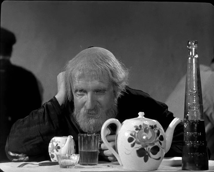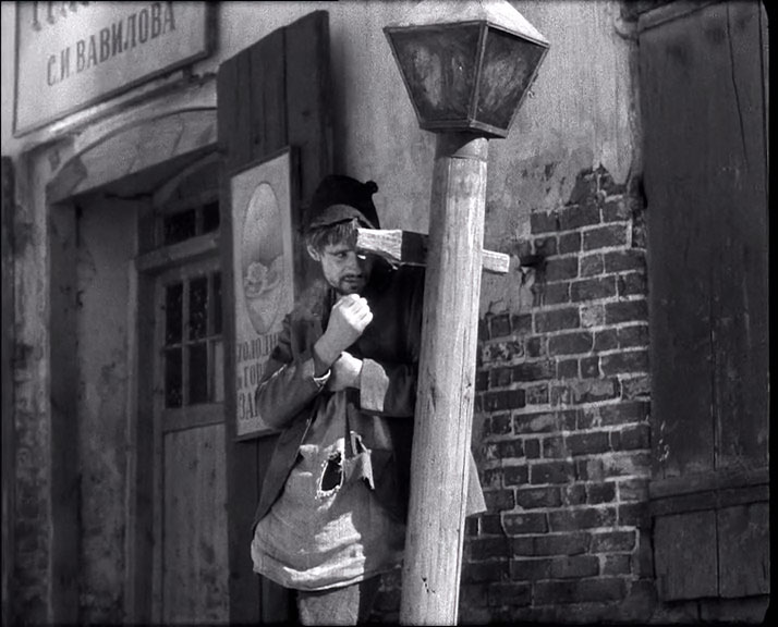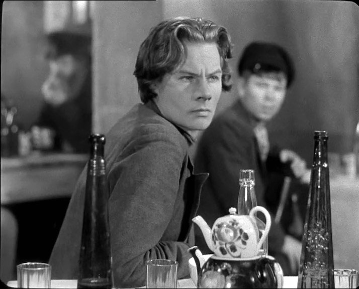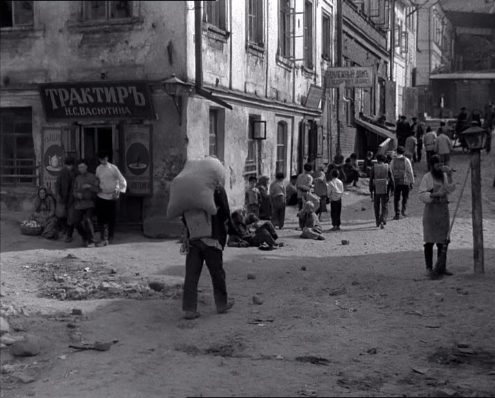 | "Детство Горького" - черно-белый полнометражный художественный фильм по первой повести из автобиографической трилогии Максима Горького. Режиссер - Марк Донской, снят на киностудии "Союздетфильм", вышел на экраны 18-го июня 1938-го года. Роль Алеши Пешкова - единственная работа в кино Алексея Лярского (он погиб на фронте 8-го февраля 1943-го года). Дело происходит в Нижнем Новгороде, в середине 70-х годов XIX-го века. В первой части трилогии из околопивного можно только видеть Трактиръ "с подачей горячего чаю" И. Н. Шишкина. О И. Н. Шишкине ничего сказать не могу, возможно владелец трактира относится к известной купеческой семье Шишкиных из Елабуги. | ||||||||||||||||||||||||||||||
