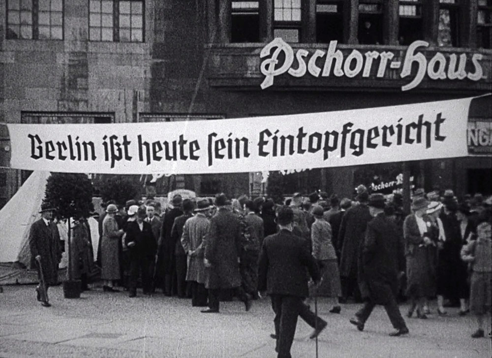 | "Обыкновенный фашизм" - двухсерийный черно-белый публицистический документальный фильм режиссера Михаила Ромма, снятый на киностудии "Мосфильм" ("Третье творческое объединение") и вышедший на экраны в 1965-м году. Фильм рассказывает об истории и идеологии фашизма, прежде всего в нацистской Германии. При этом как-то почти полностью пропущена страница связи пива и нацизма. Ничего не рассказывается про мюнхенские пивные, где собирались нацисты до своего прихода к власти, нет ничего и о про "Пивной путч". Есть кадр с Герингом пьющим пиво, но его здесь пропущу, лучше расскажу про известную берлинскую пивную, промелькнувшую в одном из кадров (где показана акция "Воскресный айнтопф" - совместное поедание немцами супа). "Пивной дом Зихен" (Bierhaus Siechen) - спроектирован архитектором Иоганном Эмилем Шаудтом и построен в 1910-м году в Берлине, на Потсдамской площади 3. Это был один из крупнейших пивных ресторанов в Берлине, с несколькими пивными, обеденными и банкетными залами размещавшимися на двух этажах. С 1925-го года, в нем стали разливать пиво от Pschorrbräu AG и потому он стал называться "Дом Пшорра" (Pschorr-haus). В конце Войны он был сильно поврежден бомбардировками, после Войны входил в Британский сектор Берлина и его руины окончательно были уничтожены в 1952-м году. А пивоварня Hacker-Pschorr Bräu GmbH - сейчас входит в Paulaner Brauerei Gruppe. |