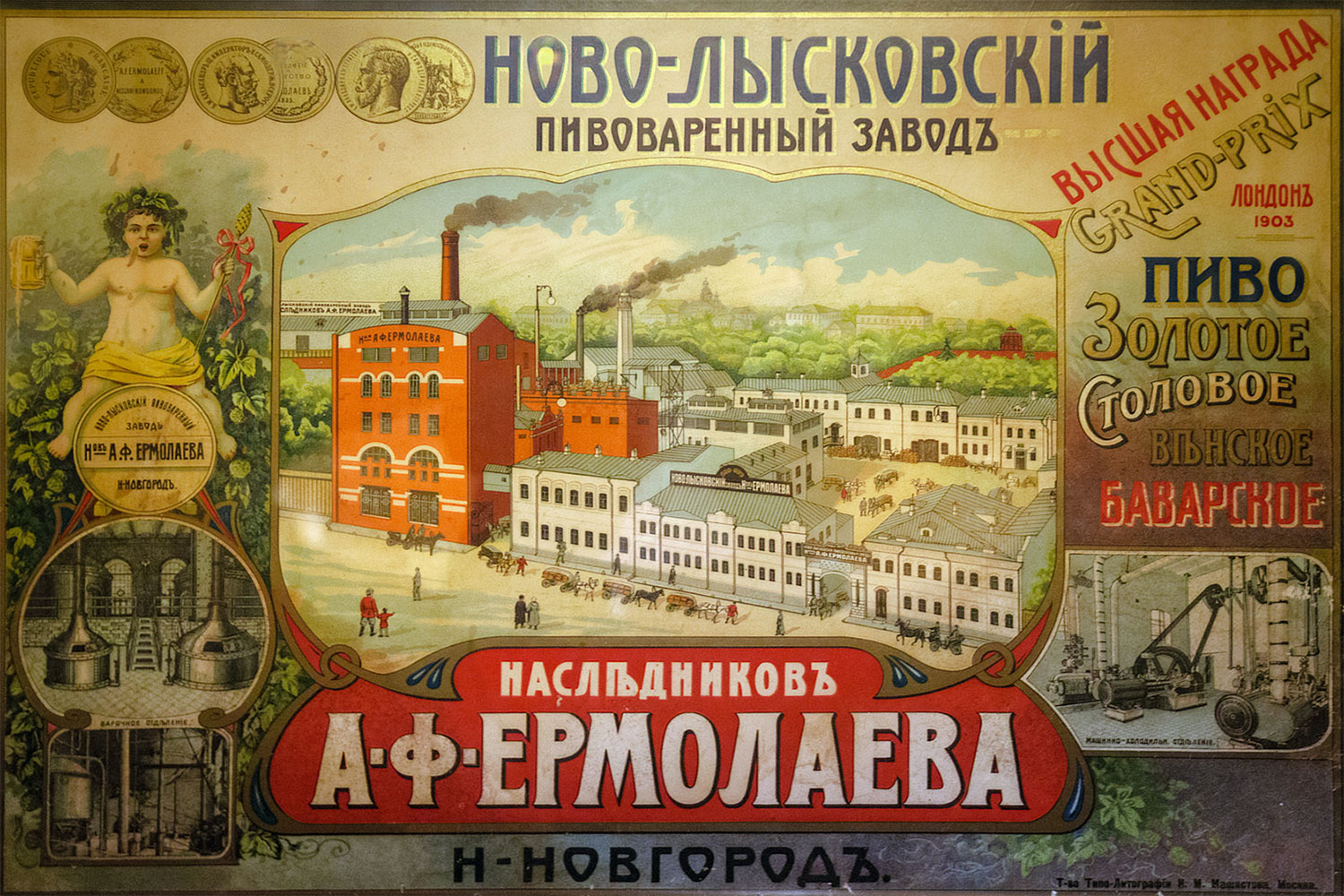 | Плакат Трехгорного завода в Москве. | Плакат Трехгорного завода. | Плакат пива А. Ф. Берникова в Москве. | Плакат Ново-Лысковского завода. | Плакат т.д. Александрова в Казани. | ||||||||||||||||||||||||||||||
