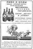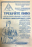 | Плакат Краснодарского бродтреста. | Плакат Росглавпиво. | Плакат Росглавпиво. | Плакат Главпиво. | Реклама в газетах. | ||||||||||||||||||||||||||||||
