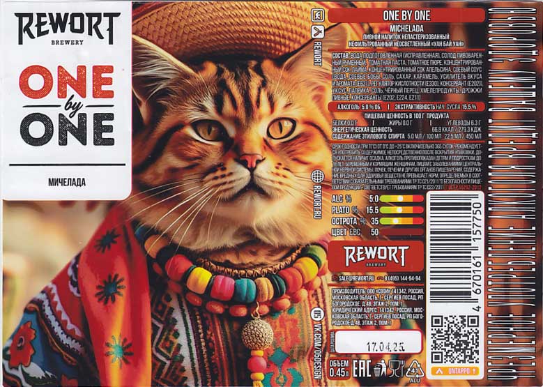 | Это уже куплено в "Дикси", очень не задорого. Rewort Brewery, "One By One" - мичелада, вкус мексиканских соусов - томат, специи, немного перчености. Под мясо - отлично! |