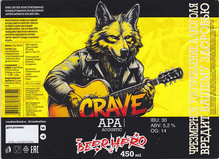 Крейв бирхироу, АПА акустик |