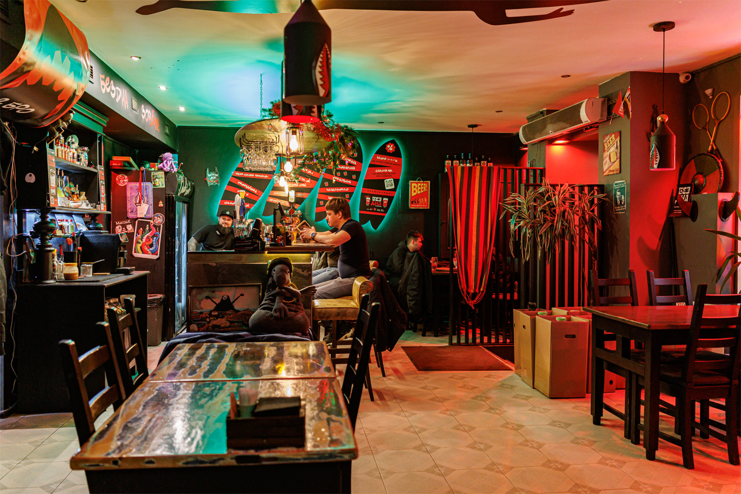 Почти напротив отеля "Азимут" (Рижский проспект, 12) расположен бар "БезДна" где собственно и можно было вечером попить пива. Заведение небольшое, но уютное, красиво и с любовью оформленное. Цены на пиво здесь умеренно высокие, выбор интересный, попробовали копченый лагер, биттер и НЕИПА местных контрактных пивоварен с крана, а также из баночек - браггот, стаут и колд ИПА тоже в основном от контрактных производителей. В баре есть и интересная кухня, но до нее руки не дошли. Не забыты и всякие настойки-наливки для тех, кто хочет покрепче. |