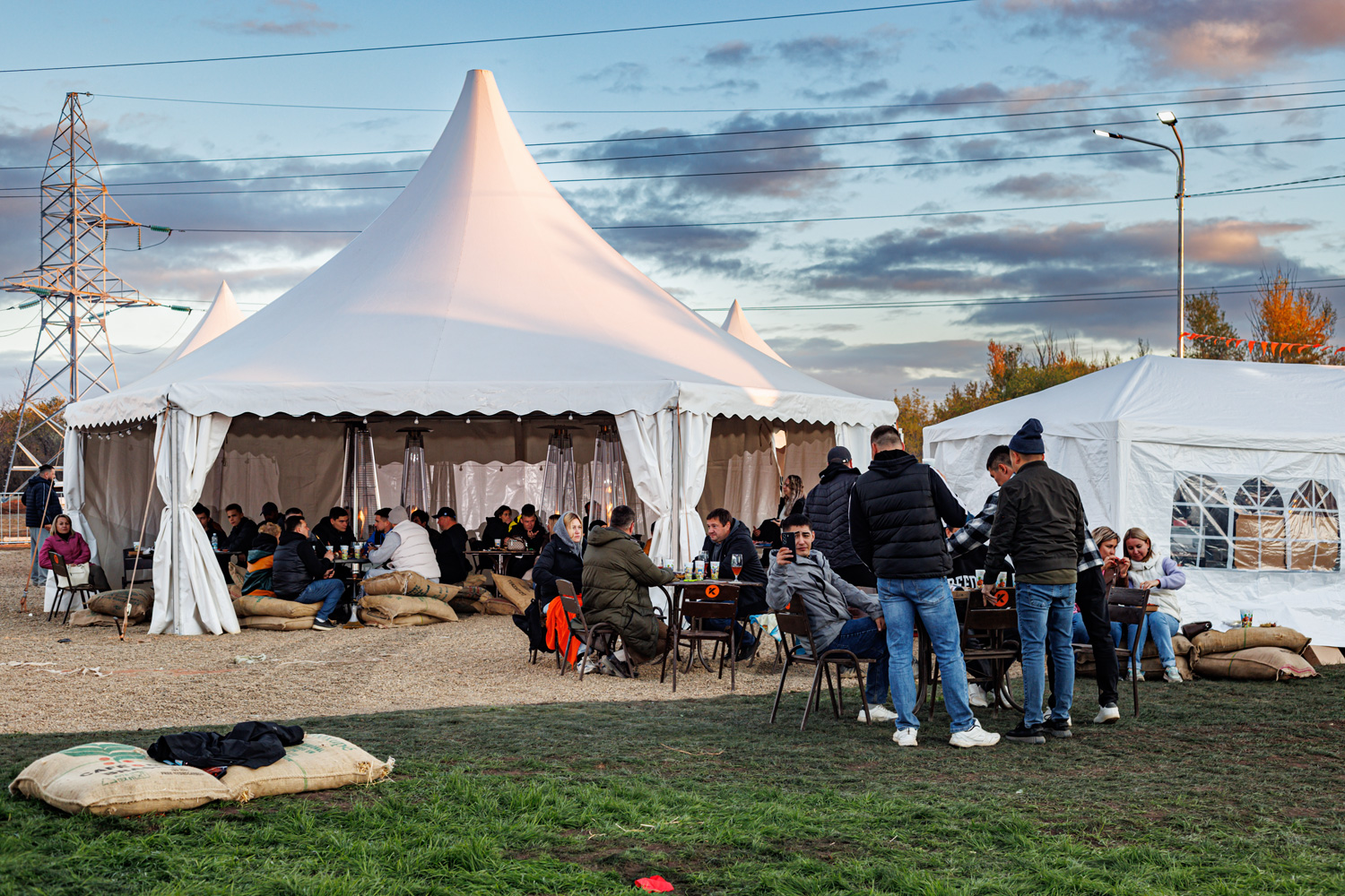 Фестиваль напитков, гастрономии и музыки "Крафт базар" прошел в Оренбурге 27-28 сентября, организован он был к 10-ти летию пивзавода "Крафт". Проводился он на поляне перед заводом (улица Тихая, 8/2), кроме пива собственно от "Крафта" были представлены еще полтора десятка пивзаводов и медоварен с довольно широкой географией (а вот сидра - не было). Билет стоил 4000 р. на день или 5500 на два, на пиво был полный безлимит, организовано все было на отлично, пожалуй впервые увидел как на фестиваль охрана начала пускать посетителей еще до официального открытия, единственно что подкачало - это погода. За несколько дней до этого, в Оренбурге еще было лето и +25°, но к выходным, когда проводился фестиваль, она упала до 10°, а во второй день было еще пасмурно и дождь накрапывал. Но было куплено по 1000 билетов на день, так что примерно столько посетителей и пришло, но уже ближе к вечеру, когда выступали известные музыканты. Поскольку фестиваль проходил фактически за городом, была организована доставка посетителей на автобусах из центра города. Музыкальные коллективы, кстати, были очень востребованы, во время выступлений пиво фактически не проливалась, все стояли у сцены (выступали "Йоп Шоу", "Хитобои", Rock Privet и другие), для публики имелось и много других развлечений, в том числе лекции в отдельном шатре, где я тоже рассказал желающим про советские сорта пива. Также ведущие на сцене разыгрывали различные ценные призы. Закуски под пиво имелись, туалетов хватало, посидеть можно было на мешках с сеном разбросанных по поляне или на скамейках со столиками в шатрах, были даже мойки для бокалов, которых часто не бывает даже на крафтовых фестивалях, сам бокал был очень удобный, толстого пластика и с фестивальным рисунком. Имелась в продаже и другая пивная и около пивная атрибутика. По пиву: кроме "Крафта", из Оренбурга были "Браухоф" и Grey Swan (с приличными лагерами, но и не только), а также медоварня "Степь и Ветер" (от них попробовал томатный мёд). Московскую область представляли ID Jons (Внуково) - здесь даже пришлось постоять за стойкой, подменяя Александра Иджона, а также Hammer Mill (Балашиха), Zavod (Химки) и Atmosphere (Клин). Из Санкт-Петербурга были Brew Garage, Gas и Seagull Oleg. Также приехали: "Ганза" (Краснодар), "Шишкин" (Самара), SG (Тольятти) и медоварня Mjolnir (Курск). Попробовал довольно много, практически по несколько сортов от каждой пивоварни, но напишу про питое пиво лучше в следующем выпуске "Ящика пива". Кроме обычных посетителей, были также специально приглашены партнеры пивзавода и блогеры, для них была организована расширенная программа (которая длилась четыре дня, а не два), в том числе экскурсия на сам пивзавод (собственно о ней и был мой предыдущий репортаж), а также экскурсия по городу с заездом в интересные бары (с дегустацией пива и закусок), об этом расскажу в следующем выпуске, посетили также местный краеведческий музей, ну а вечером перед и на самом фестивале были организованы небольшие банкеты. Если бы не погода, фестиваль можно назвать успешным и приятным, вероятно он станет регулярным, правда организаторы сразу задумались перенести его проведение на более ранние сроки. |