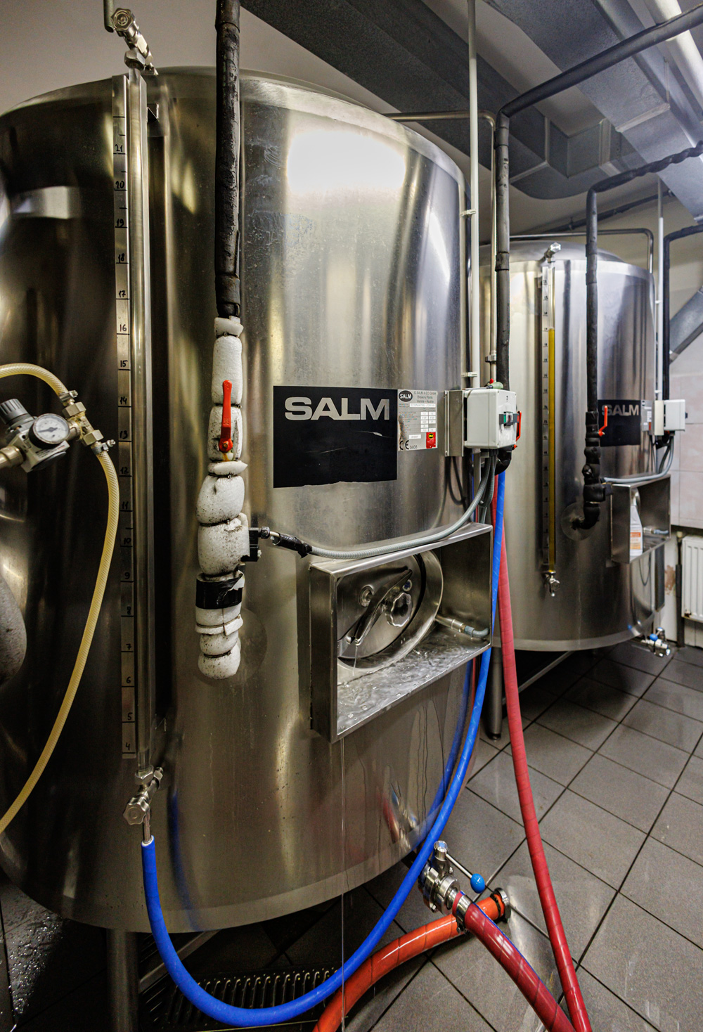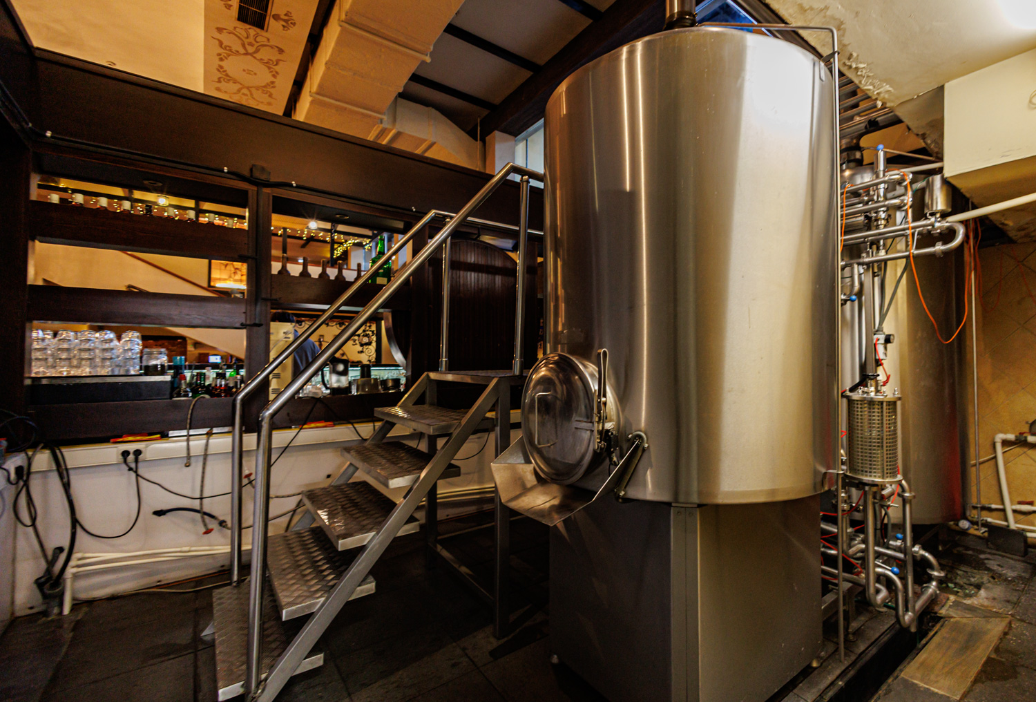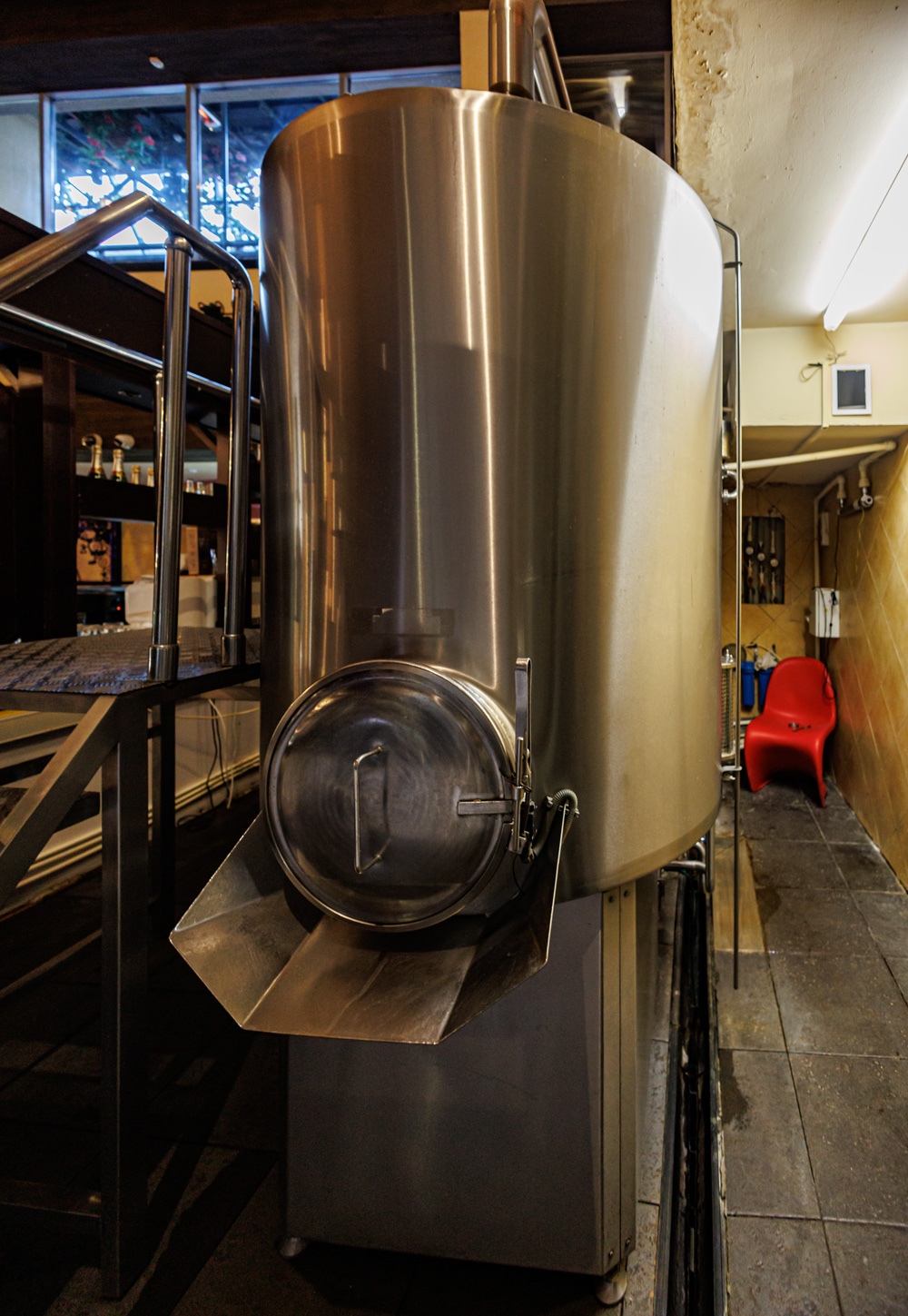 За барной стойкой расположен варочный порядок пивоварни производства австрийской фирмы Salm. Пиво сбраживается в вертикальных танках, также имеется большой парк форфассов. Часть танков используется для производства лимонадов. Экскурсию по пивоварне провел ее главный пивовар - Яков Никитин. Производится три сорта пива: "Helles" - в общем-то классическое "живое-нефильтрованное" - чистое, бархатное, едва охмеленное, но питкое. "Weizen" - во вкусе лишь немного банана, но много гвоздики и заметной кислинки. "Brudercraft" - не сложная ИПА - в аромате и вкусе заметны классические тропические фрукты, есть умеренная но явная горечь. По ценам - 330 р. за бокал 0,4 л., "Brudercraft" - 390 р. Дегустационный сет - 360 р.