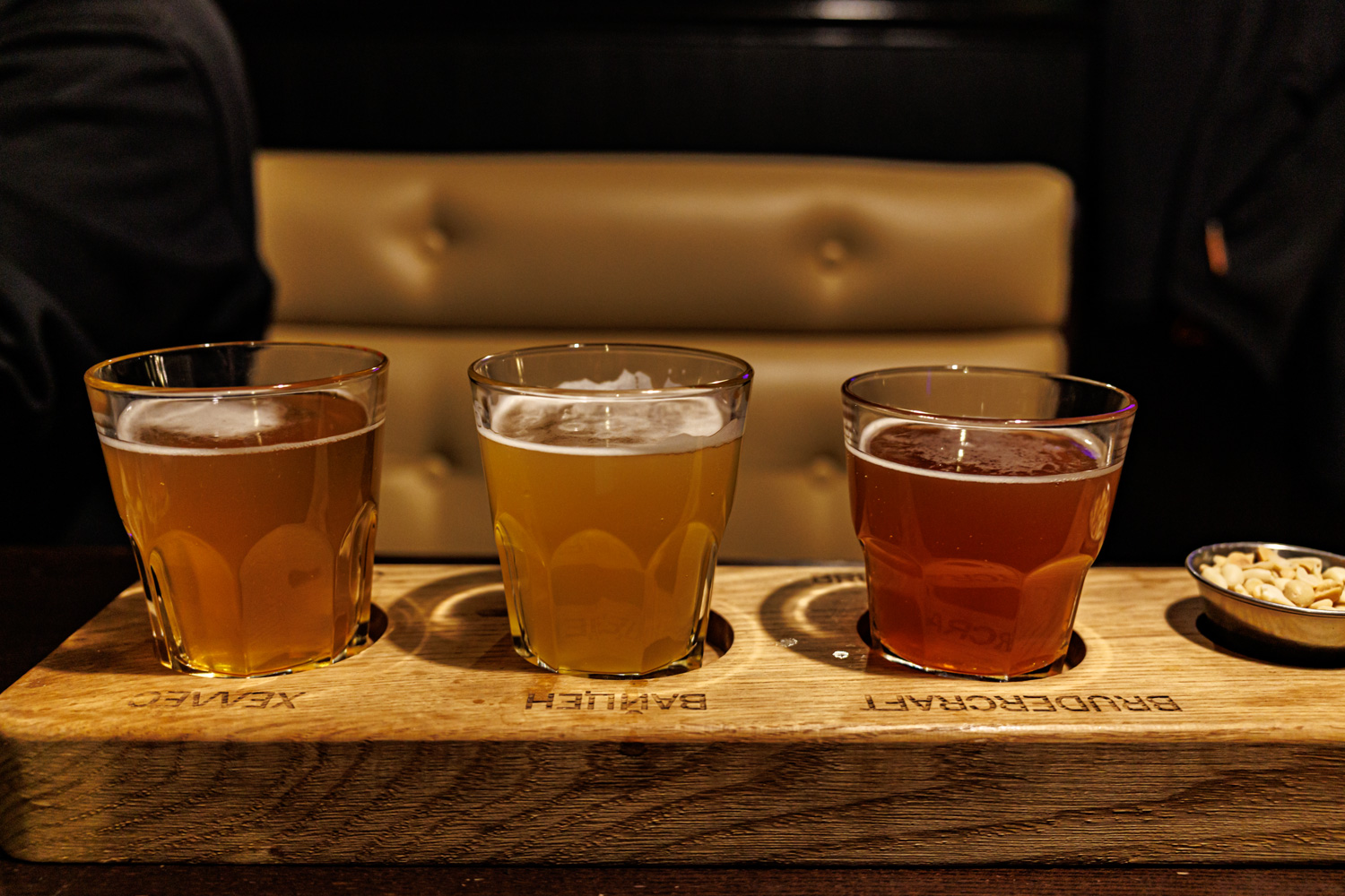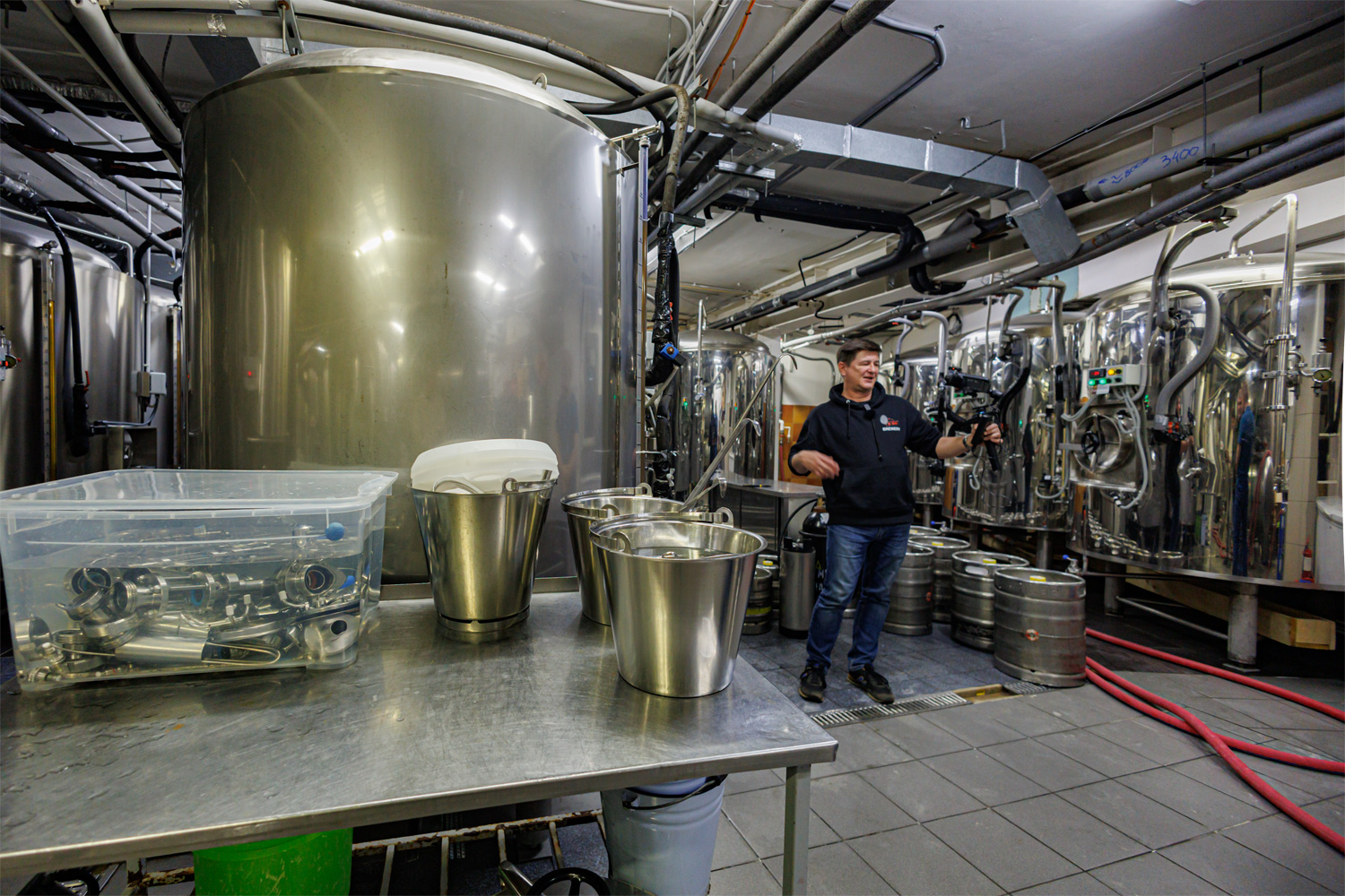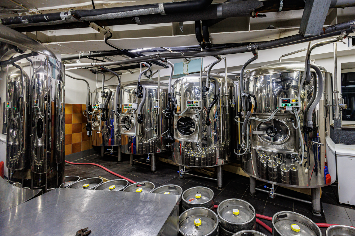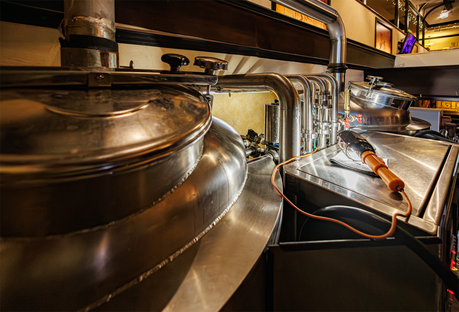 За барной стойкой расположен варочный порядок пивоварни производства австрийской фирмы Salm. Пиво сбраживается в вертикальных танках, также имеется большой парк форфассов. Часть танков используется для производства лимонадов. Экскурсию по пивоварне провел ее главный пивовар - Яков Никитин. Производится три сорта пива: "Helles" - в общем-то классическое "живое-нефильтрованное" - чистое, бархатное, едва охмеленное, но питкое. "Weizen" - во вкусе лишь немного банана, но много гвоздики и заметной кислинки. "Brudercraft" - не сложная ИПА - в аромате и вкусе заметны классические тропические фрукты, есть умеренная но явная горечь. По ценам - 330 р. за бокал 0,4 л., "Brudercraft" - 390 р. Дегустационный сет - 360 р.