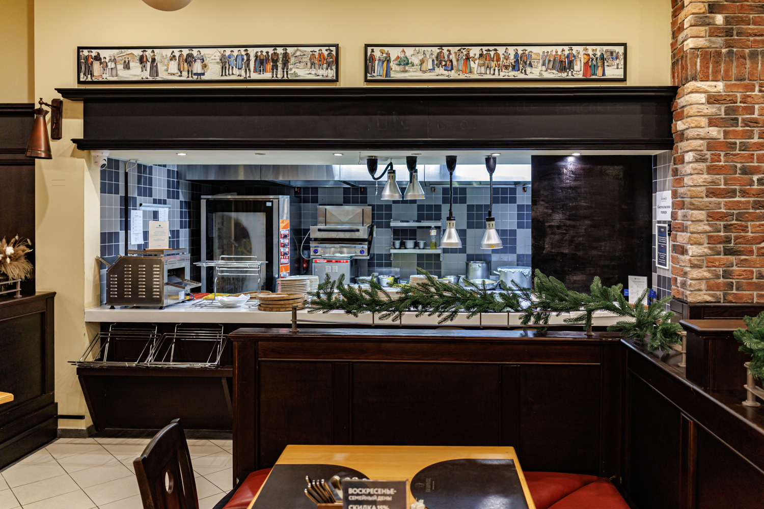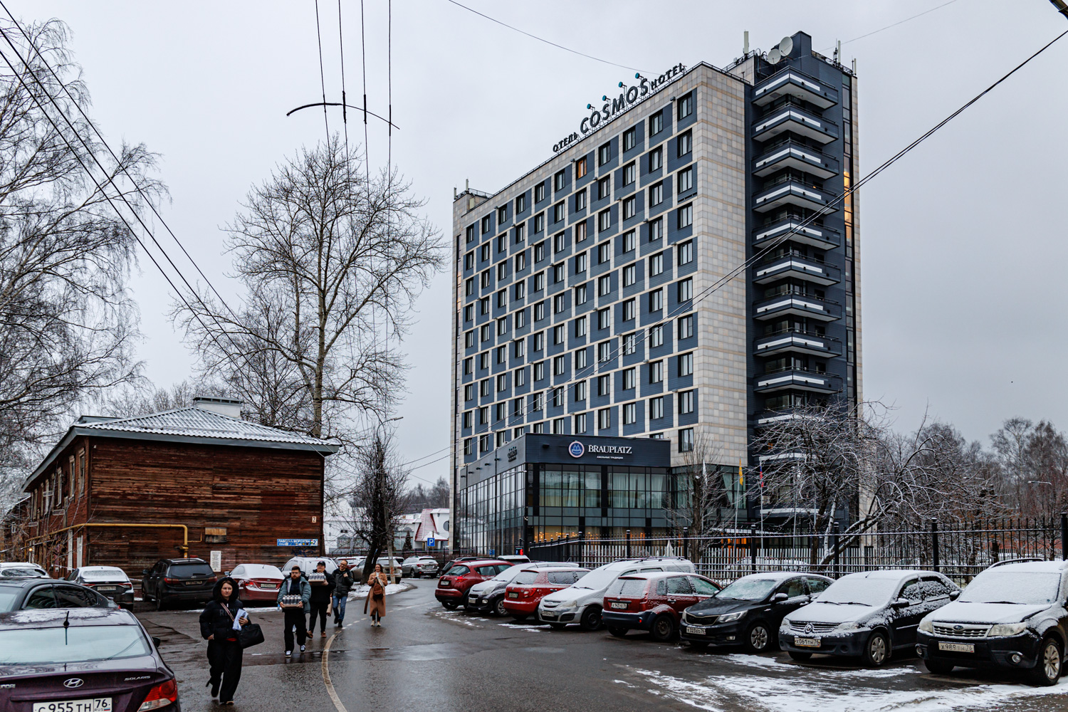 Гостиница Cosmos ранее называлась Park Inn (все это - сеть Radisson) и при ней был ресторан Paulaner которые теперь и называется Brauplatz. Интерьеры ресторана сохранились, ресторан небольшой и вполне уютный, кухня осталась с ориентацией на баварскую, а пиво больше не Paulaner, а в основном "Балтика". Хотя наиболее интересные сорта - на кране "Балтика helles" - которая бывает только разливной, а в бутылках и банках есть "Блонд" и "Брюн" проекта "Балтика Брю", бельгийскую тему дополняет "Крон бланш бьер", а также имеются APA и IPA от "Горьковской пивоварни" (сваренное на "Балтике"). Также имеется пиво под локальным брендом "Ярославское" - как в розлив, так и бутылочное. Интересно, что на кранах еще стоят блонд или брюн "Аббе" от "Инбев-Эфес". То есть выбор пива не богатый, но вполне интересный (я бы добавил еще "Балтику stout", вот тогда пиво было бы на любой вкус), цены - 440-460 р. за разливное и 350-490 р. за тарированное (поллитровая кружка, а бутылки-банки - 0,45 л.). Кухня вполне приличная, а по ценам: супы - около 500 р., колбаски - около 800 р. Кроме пива, имеются и другие алкогольные напитки (и конечно - безалкогольные).