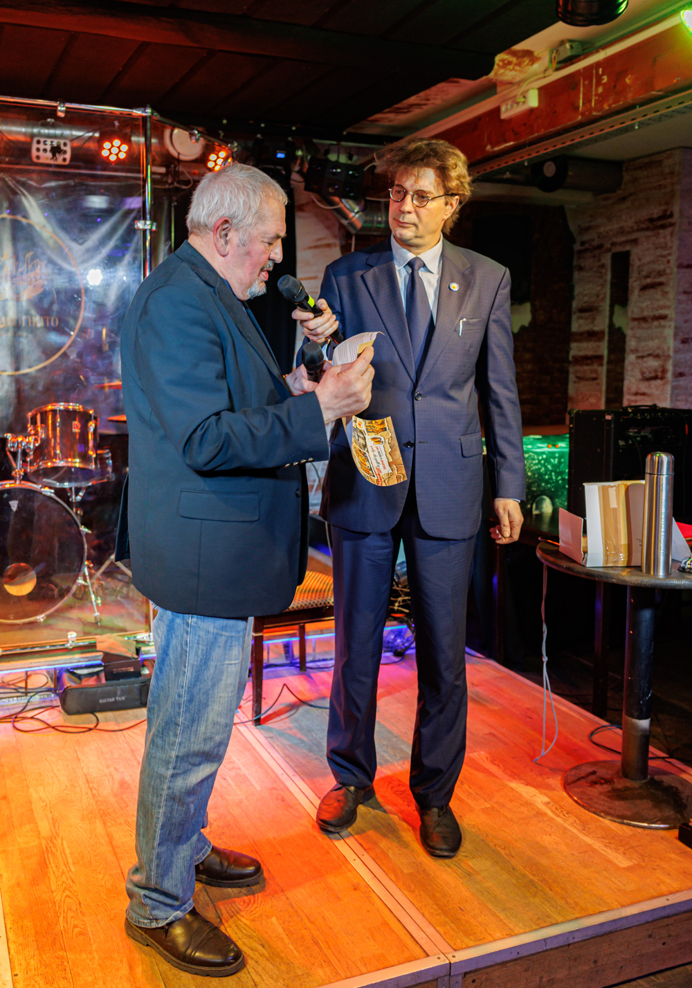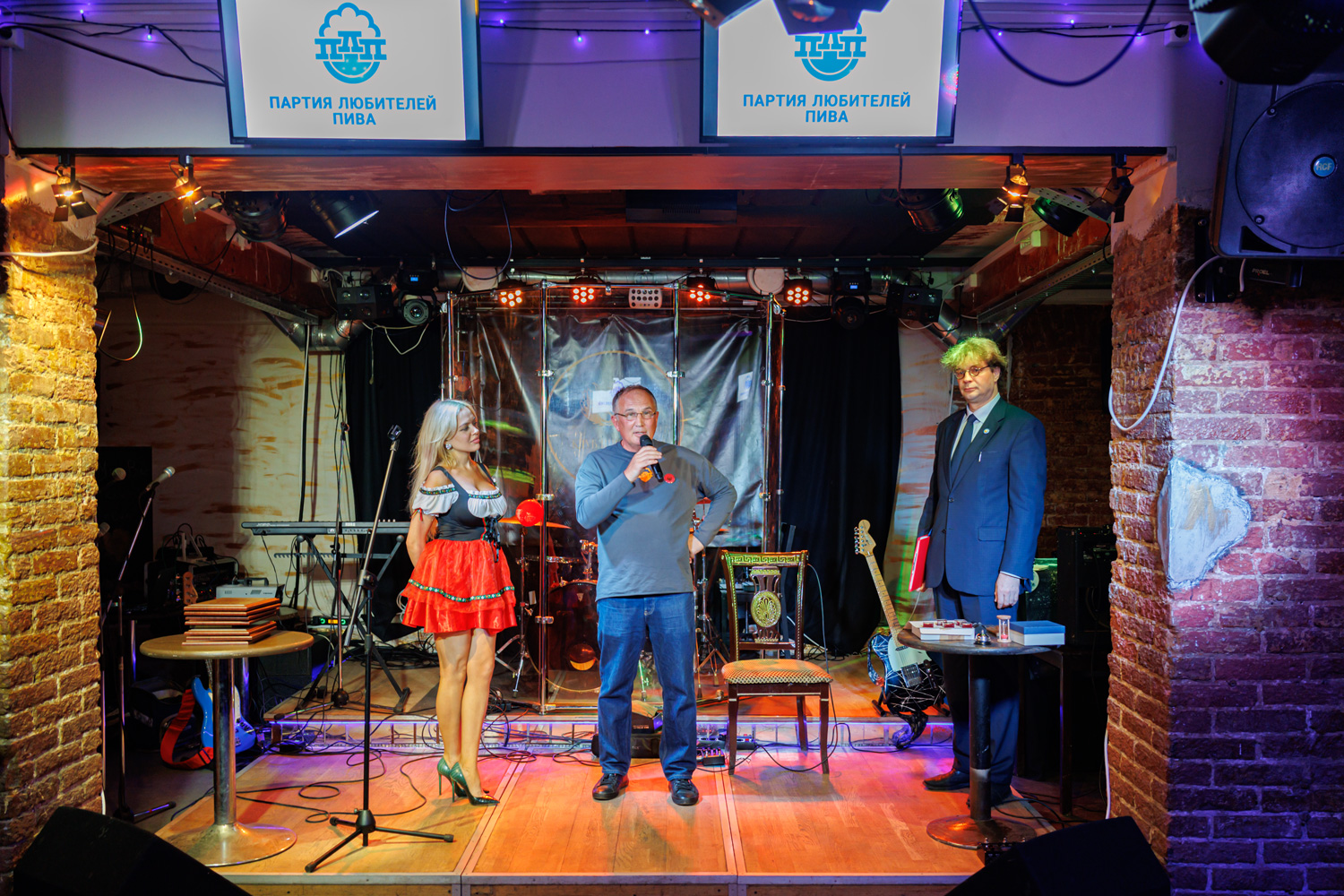 "Партия Любителей Пива" - была организована и зарегистрирована уже 30 лет назад, хотя сейчас находится в стадии ожидания перерегистрации и вечеринка под названием "Политика, разлитая по кружкам" была по большей части посвящена чествованию ветеранов. Вручали памятные знаки, вручили и мне, хотя формально я и не состоял членом партии, но 25 лет назад, Сергей Непрокин, секретарь воронежского отделения ПЛП вручил мне партбилет, который у меня конечно сохранился (лежит в левом кармане пиджака, прямо над сердцем ;-) . После торжественной части (включавшей просмотр фильма о партии, а также составления письма потомкам) был дан "живой" концерт, ну а пиво на встрече было тоже "живое", от пивоварни "Старый Байкер Белая Борода" из Иваново. Пили 4 сорта: "Лагер", "Венское", "Карамельное" и "Стаут". Про пиво подробнее расскажу в своем следующем выпуске "Ящик пива". Кстати, среди гостей, был посол Австрии в РФ (в прошлом году, их "Партия Пива" участвовала в выборах австрийского парламента). |
