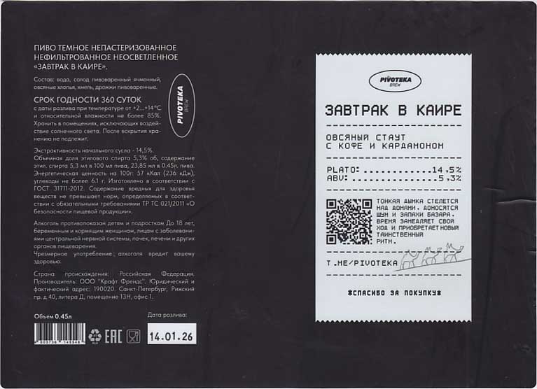 ООО "Крафт френдс". "Pivoteka brew".